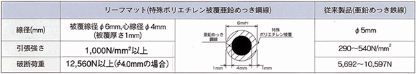 特殊ポリエチレン被覆により、耐食性、耐磨耗性、耐候性に優れ、従来製品(亜鉛めっき品)に比べ耐久性が格段に向上しました。 - 強度