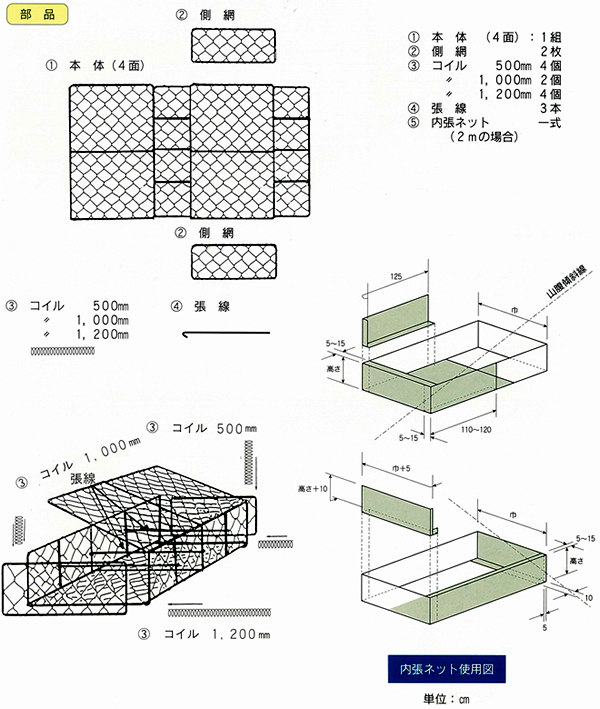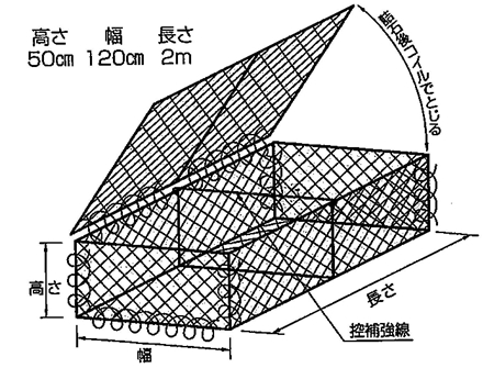 - 控補強線を50cmピッチに使用することにより、かごのハラミを防止できる