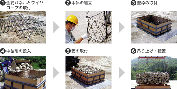 リーフマットとは、特殊ポリエチレン被覆線材を使用し、従来製品に比べて耐久性や強度などに優れたかご製品です。