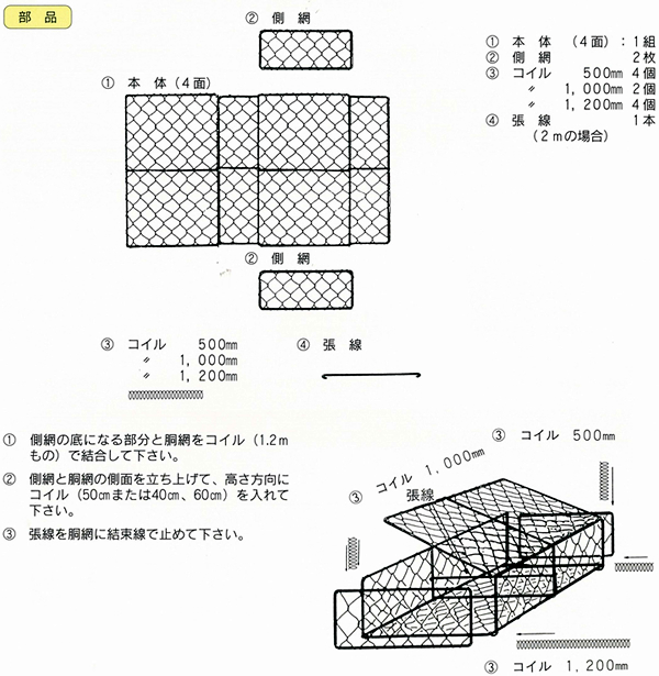 - 控補強線を50cmピッチに使用することにより、かごのハラミを防止できる